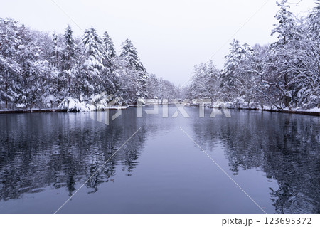 冬の軽井沢 雪化粧の雲場池