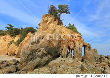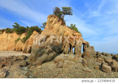【山口県】晴天の本山岬公園の「くぐり岩」