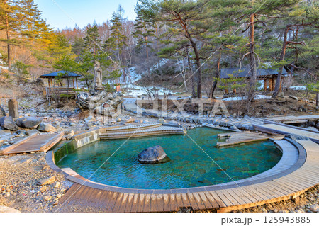 群馬県 吾妻郡草津町 草津温泉 早朝の西の河原公園