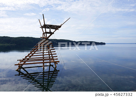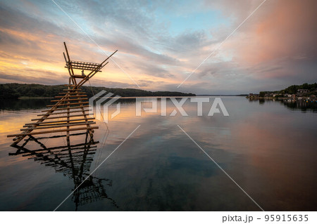 日本最古の漁法・ぼら待ちやぐらのある風景、石川県鳳珠郡穴水町にて