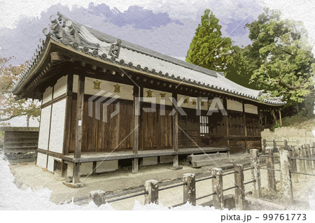 水彩画風 叡福寺 弘法大師堂 大阪府南河内郡太子町