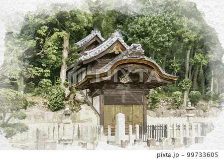 水彩画風 叡福寺 磯長墓 聖徳太子墓 大阪府南河内郡太子町