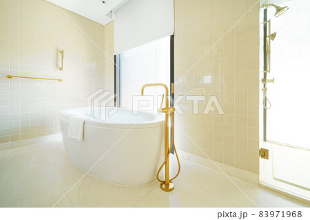 Bathtub on bathroom interior design.