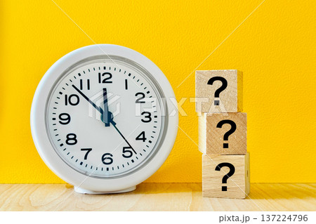 時間、時刻|時計とハテナマークの積み木