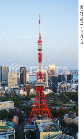 日本東京 - 2024年4月14日:從東京港區麻布台山(東京鐵塔)的免費觀景台看到的城市景觀。
