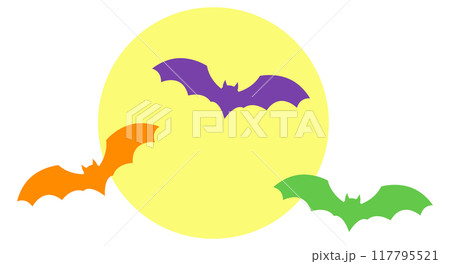 空を飛ぶコウモリ3匹と、満月