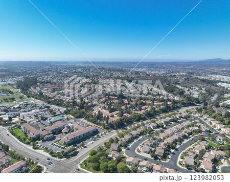 Aerial view of middle class community identical condominium, Oceanside, South California