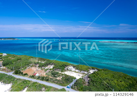 空撮 石垣空港から出発した飛行機から見る離島風景