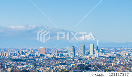 空撮「埼玉県」さいたま新都心と富士山の風景 さいたま市