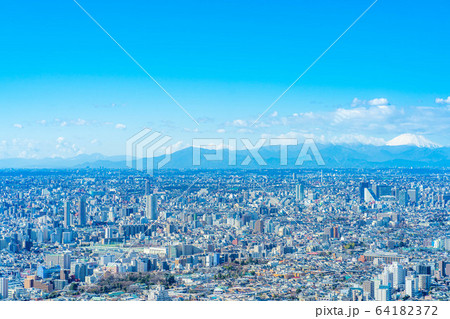 都市風景 サンシャインシティ60展望台から見た関東平野 富士山【東京都】