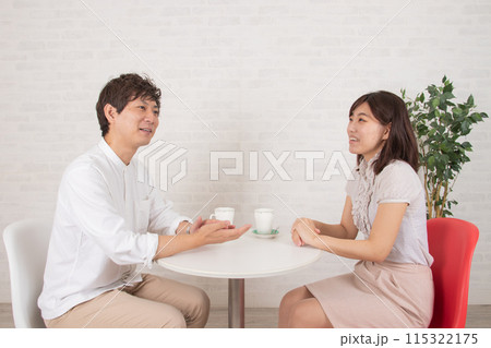 喫茶店で語り合う若いカップル