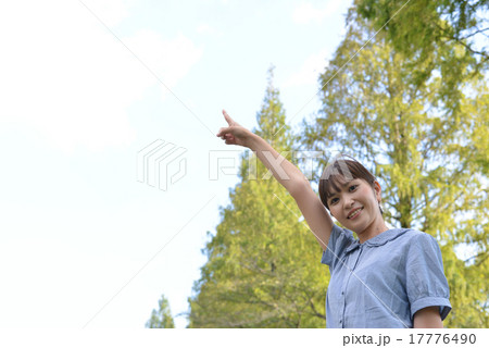 指さしをする女性