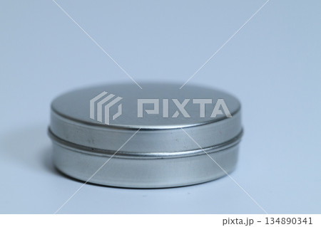 白背景に置かれた円形のシンプルな銀色アルミ缶