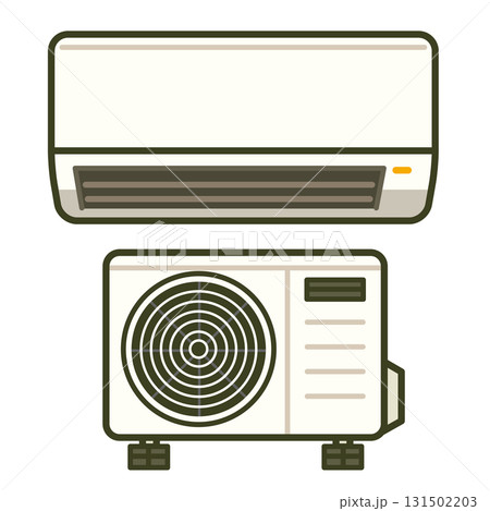エアコン正面図セット 室内機・室外機・リモコンの線画
