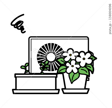 エアコン室外機の排気口が鉢植えで塞がれるトラブル 正面図