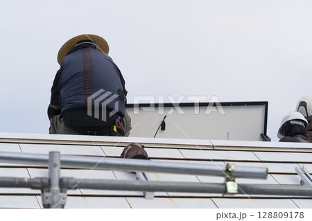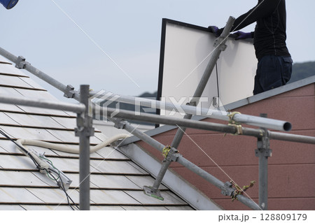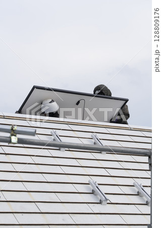 太陽光パネルを住宅の屋根に設置する工事 作業の様子