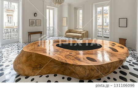 Luxurious modern cave-inspired living space with natural elements and open room interior design