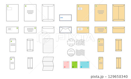 封筒と郵便アイコンセット/白封筒・茶封筒・エアメール・窓付き封筒・大判封筒の裏表