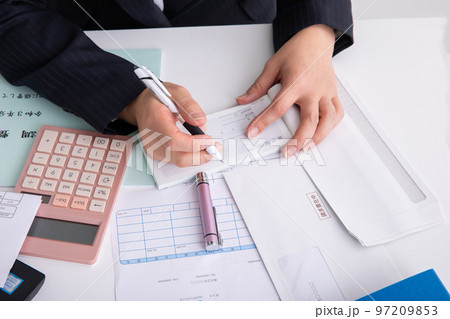 経理の仕事をするスーツの女性
