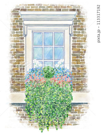 窓辺に飾られた鉢植えの【水彩イラスト】 白バック PNG