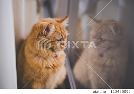 窓辺でくつろぐ可愛い猫 茶トラ猫