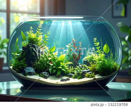 光に照らされた自然風アクアテラリウム