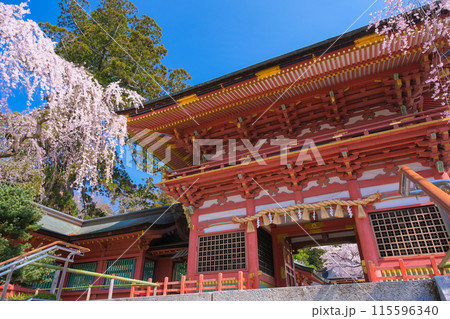 宮城県塩竈市 春の鹽竈神社 東神門の桜