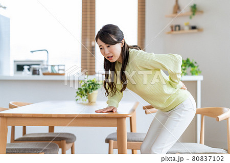 椅子から立ち上がったり荷物を持ち上げるとき背中が痛むシニア女性