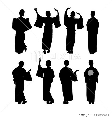 和服の女性イラストセット(着物・振袖・花魁・遊女・日本文化・伝統衣装)