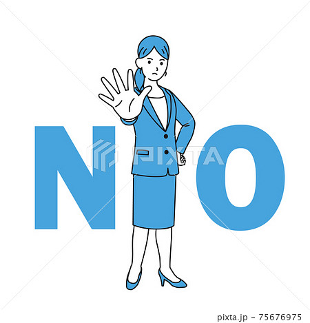 会社員 スーツ姿 女性 NO 断る 拒否するポーズ 全身 イラスト素材