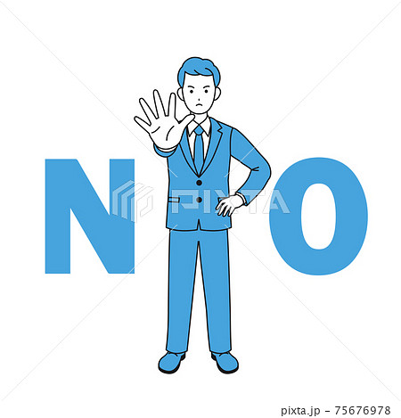 会社員 ビジネスマン スーツ姿 男性 NO 断る 拒否するポーズ 全身 イラスト素材