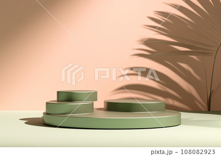 Geometric product display podium on gray background. Minimal different shapes scene stage showcase stand for product promotion presentation. AI Generative.