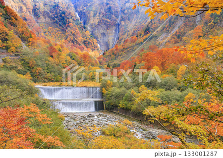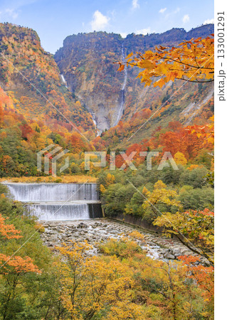 秋の富山 紅葉の称名渓谷 幻のハンノキ滝と称名川