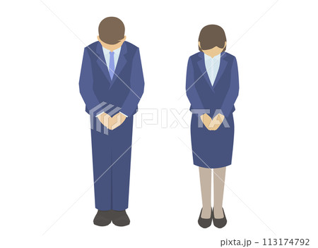お辞儀 礼儀 頭を下げる 男女 挨拶 感謝 イラスト素材