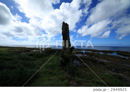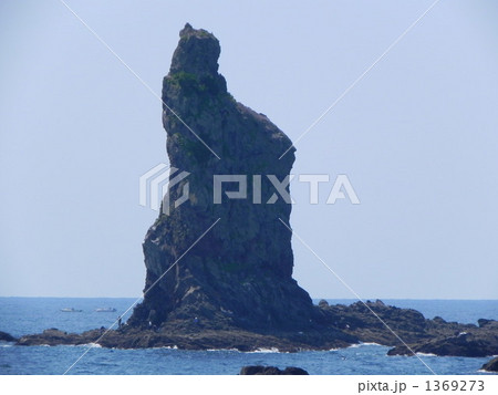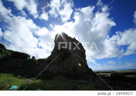 屋久島世界自然遺産の春景色、奇岩立神ときれいな海