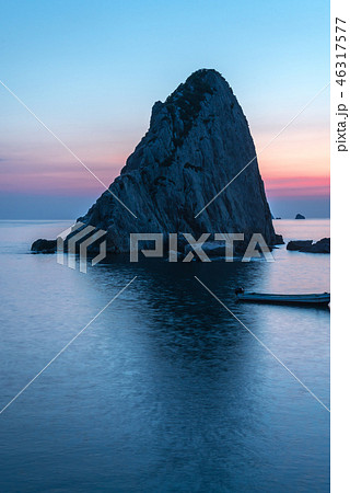 水彩画風 立神岩近くの港 波根東漁港 島根県大田市