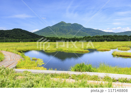 初夏の尾瀬ヶ原・竜宮小屋と燧ヶ岳の眺め