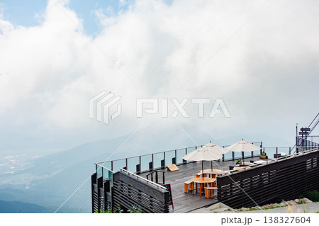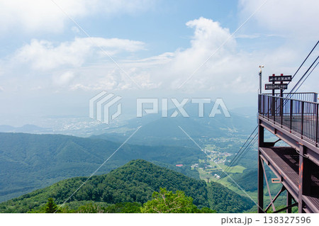 スキー場ロープウェイ山頂駅からのパノラマ風景 (長野県、竜王スキーパーク)
