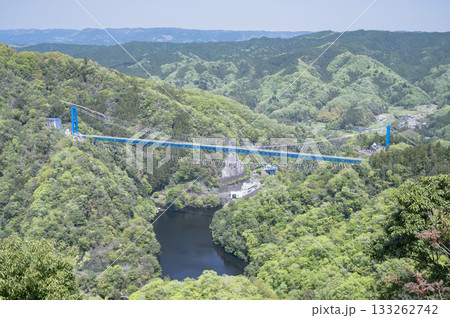 冬晴れの竜神大吊橋と竜神峡を望む清々しい風景(茨城県)