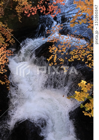 秋の奥日光の竜頭の滝の白い流れ