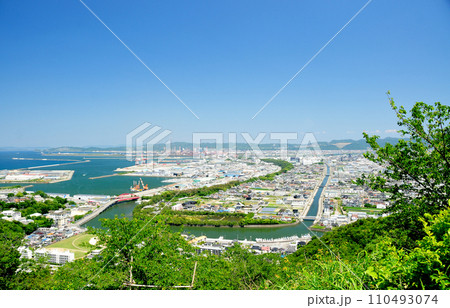 和歌山市の高津子山(章魚頭姿山)展望台から見た夕景、和歌山港と日本製鉄関西製鉄所和歌山地区