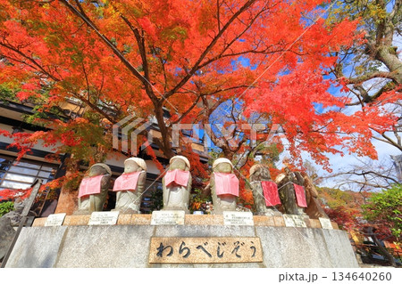 【兵庫県】快晴の須磨寺の「わらべじぞう」と紅葉