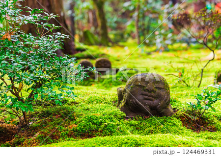 京都大原三千院 苔が美しい有清園にたたずむ「わらべ地蔵」
