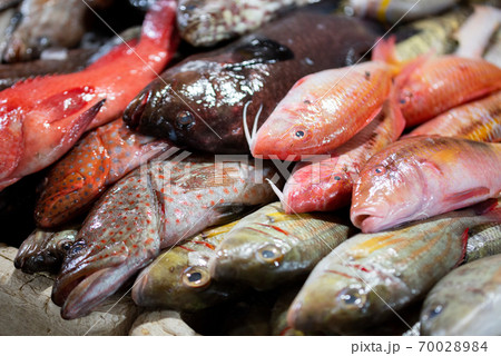 海鮮市場・魚市場の魚がたくさん並ぶ鮮魚売り場