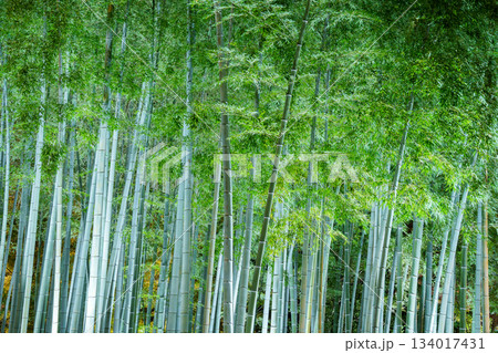 京都嵐山 竹林の道 青々とした竹林を見上げる
