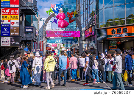 日本の東京都市景観 原宿駅竹下口 竹下通り