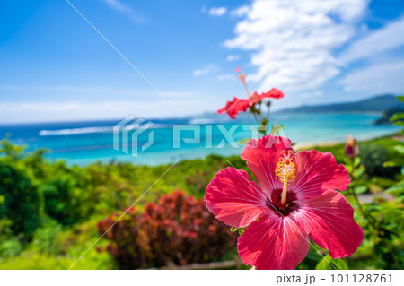 真夏の沖縄に咲く色鮮やかなハイビスカス