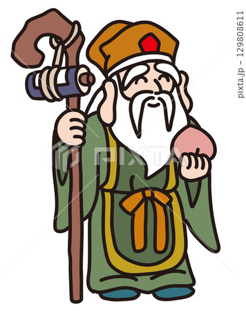 七福神の寿老人の手描きイラスト