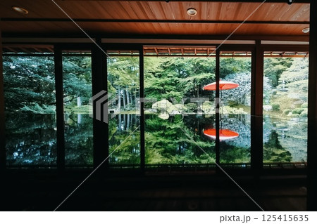 新緑の日本庭園のリフレクション