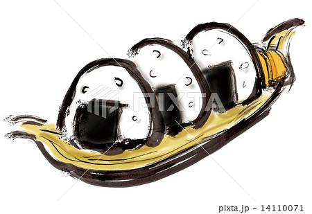 白ごはん、お結び、オニギリ、お握り、筆描き、おむすび、手描き、オムスビ、三角おにぎり、竹の皮、